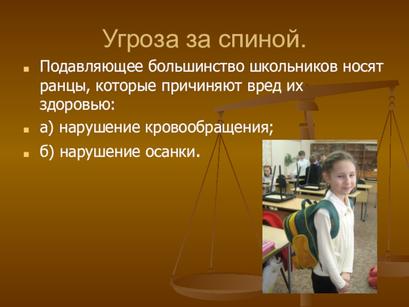 Описать, как влияют тяжелые ранцы на растущий организм ребенка, к каким последствиям это приводит;