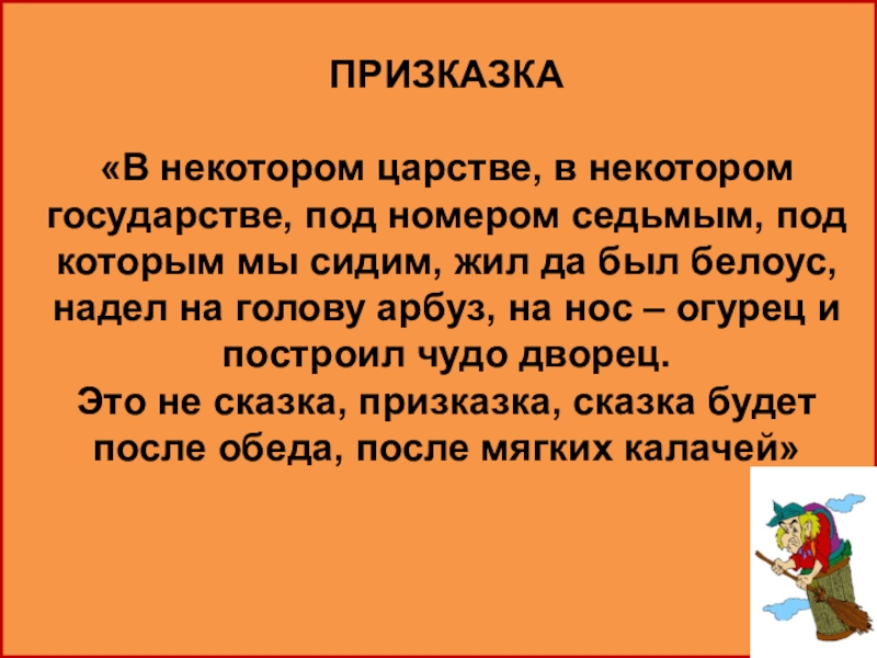 ПРИЗКАЗКА«В некотором царстве, в некотором государстве, под номером седьмым, под которым мы сидим, жил да был белоус,