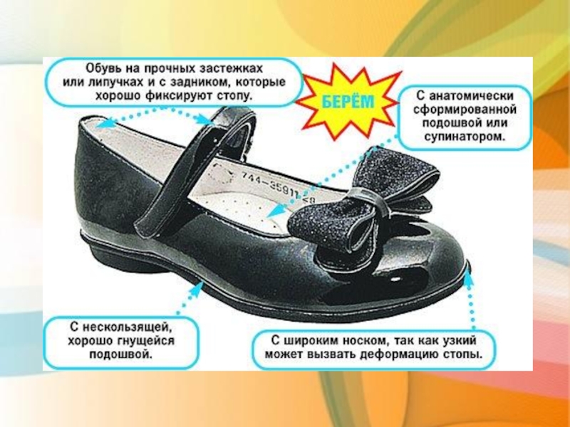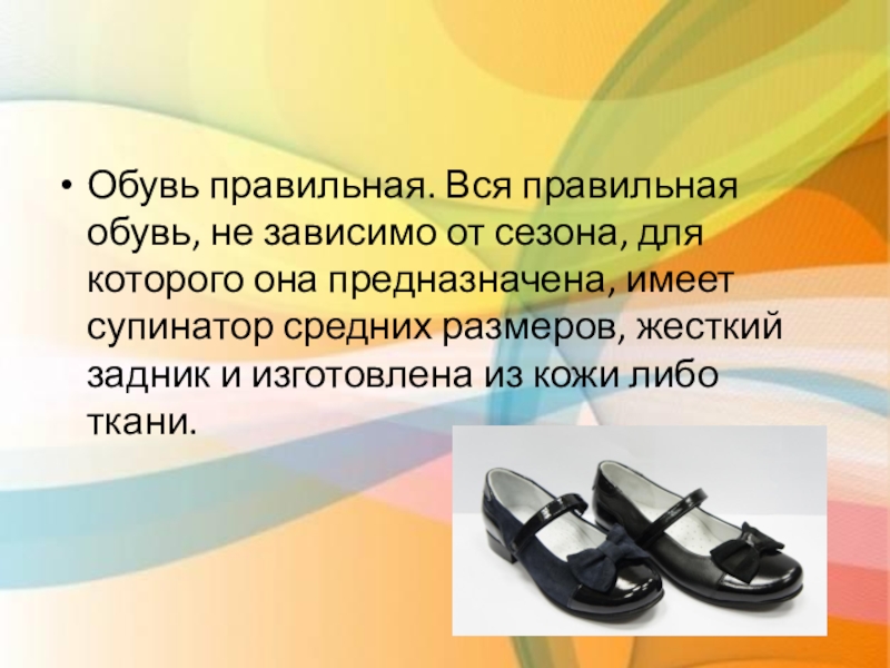 Слайд 8Обувь правильная. Вся правильная обувь, не зависимо от сезона, для которого