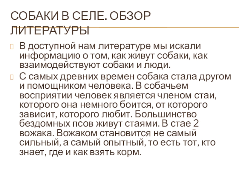 Слайд 5СОБАКИ В СЕЛЕ. ОБЗОР ЛИТЕРАТУРЫ