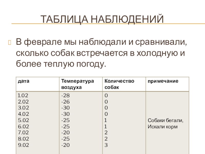 Слайд 7ТАБЛИЦА НАБЛЮДЕНИЙ