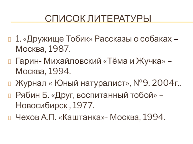 1. «Дружище Тобик» Рассказы о собаках – Москва, 1987.