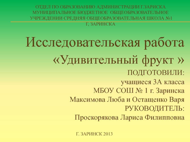 ОТДЕЛ ПО ОБРАЗОВАНИЮ АДМИНИСТРАЦИИ Г.ЗАРИСКА