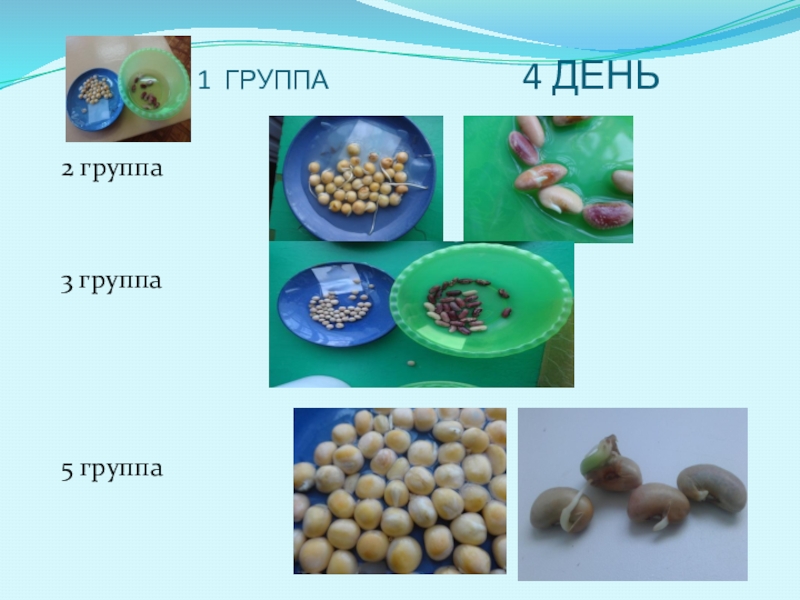 Пятая группа, созданы все условия для прорастания: группа находится в теплой, светлой комнате, семена смочены водой.