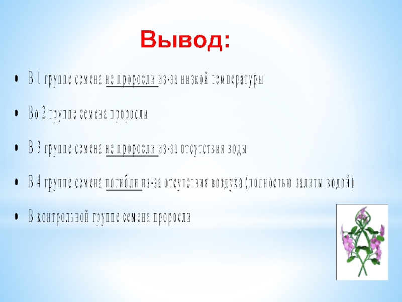 Вторая группа смочена водой и поставлена в темное место (в шкаф).