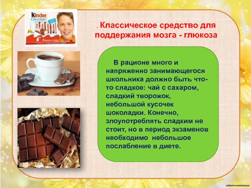 . Классическое средство для поддержания мозга - глюкоза