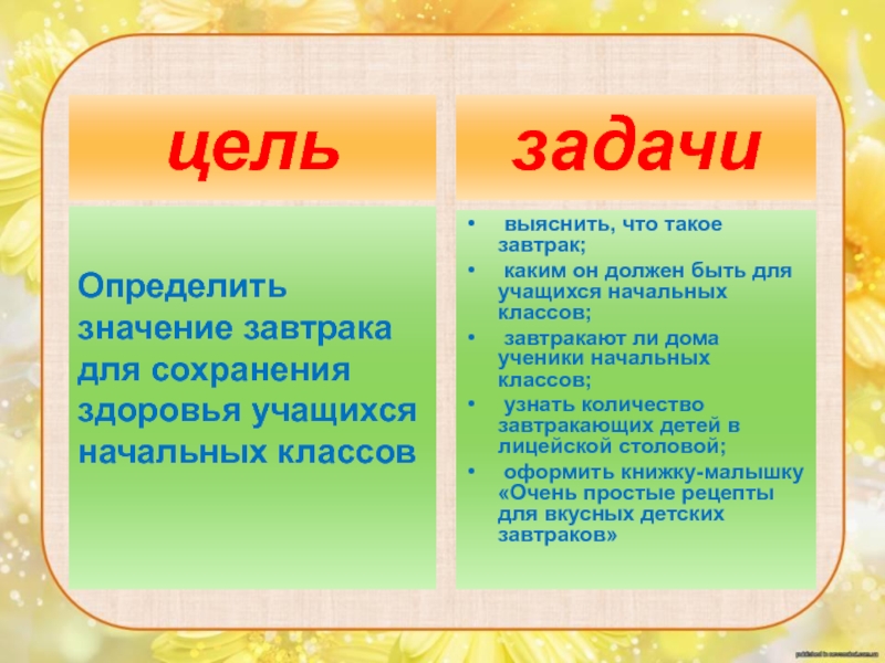 Определить значение завтрака для сохранения здоровья учащихся начальных классов