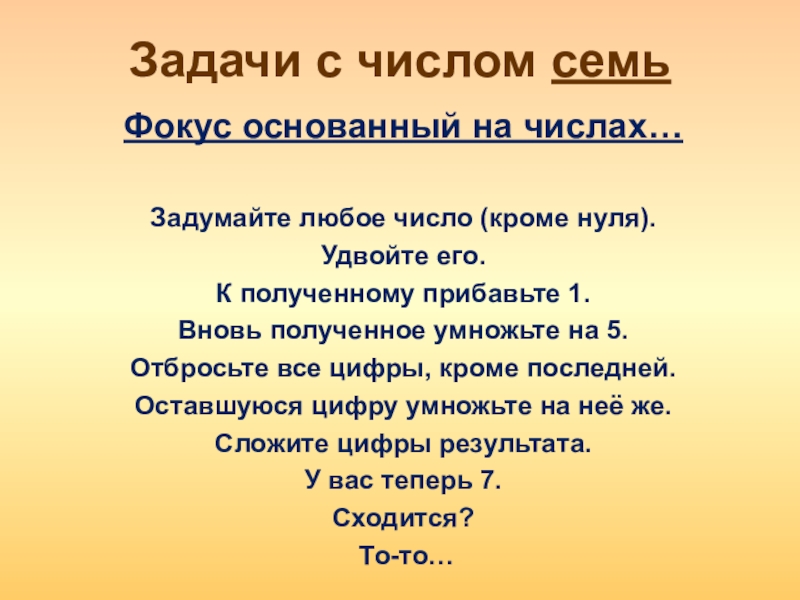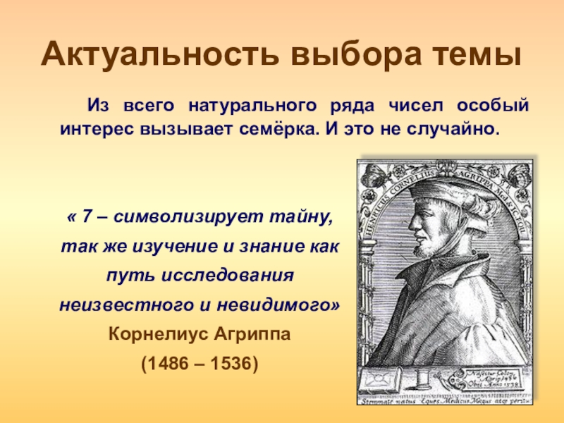 « 7 – символизирует тайну, так же изучение и знание как путь исследования неизвестного и невидимого» Корнелиус Агриппа