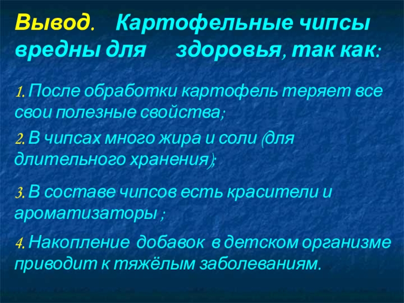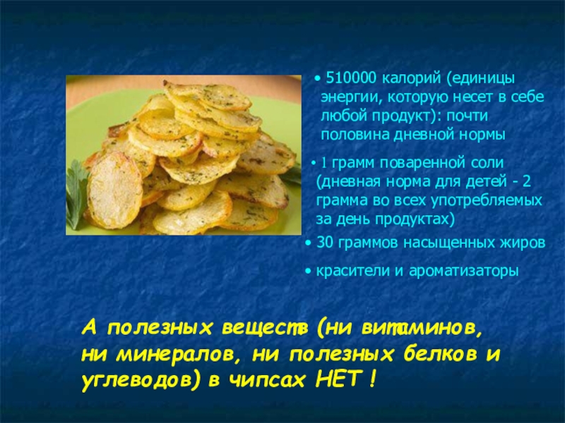 2. В чипсах крахмал отсутствует. Это ненатуральный продукт.