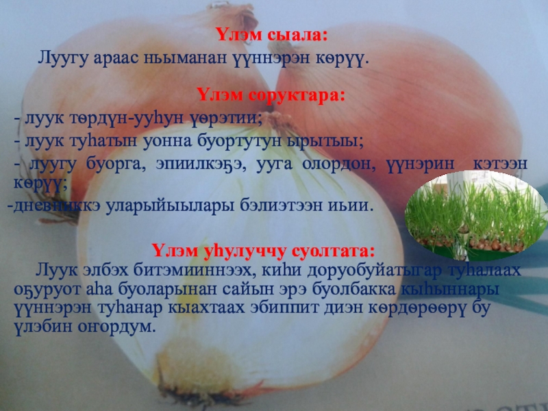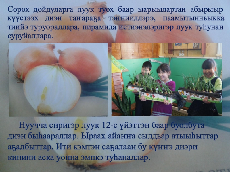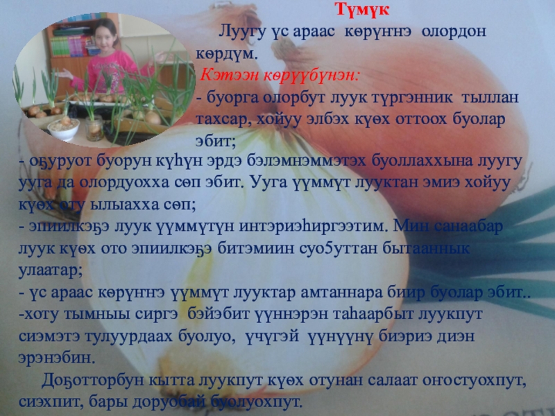 - эпиилкэҕэ луук үүммүтүн интэриэһиргээтим. Мин санаабар луук күѳх ото эпиилкэҕэ битэмиин суо5уттан бытааннык улаатар;
