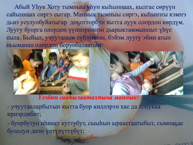 -хоту тымныы сиргэ бэйэбит үүннэрэн таhаарбыт луукпут сиэмэтэ тулуурдаах буолуо, үчүгэй үүнүүнү биэриэ диэн эрэнэбин.
