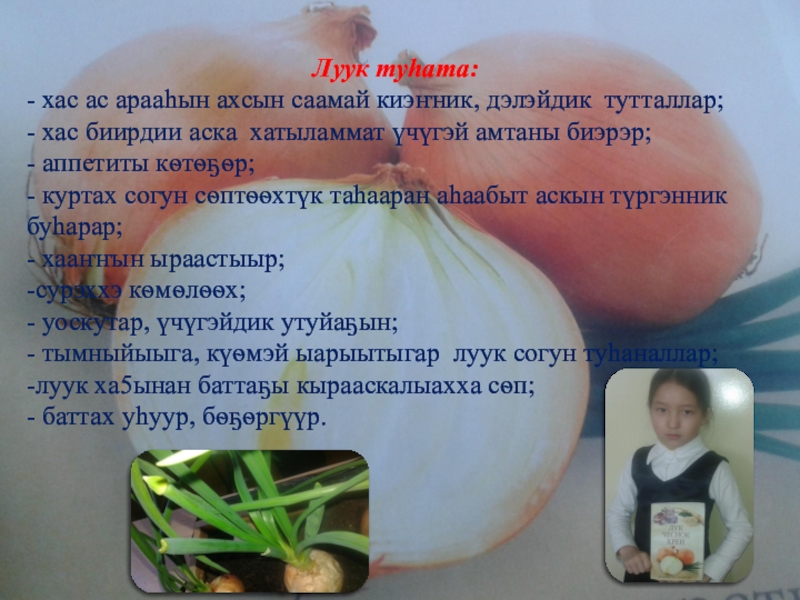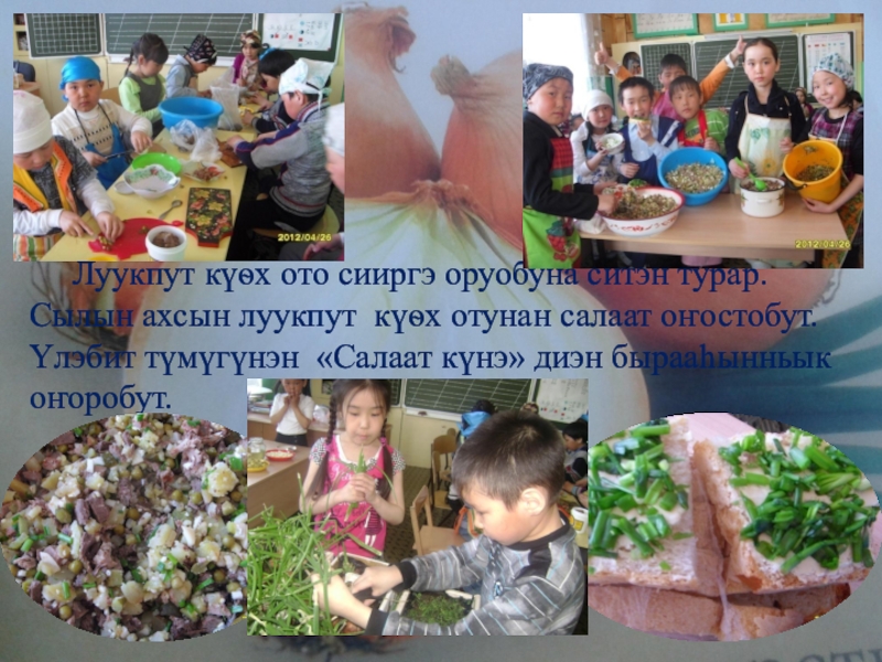 Доҕотторбун кытта луукпут күѳх отунан салаат оҥостуохпут, сиэхпит, бары доруобай буолуохпут.