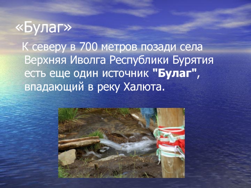 «Булаг» К северу в 700 метров позади села Верхняя Иволга Республики Бурятия есть еще один источник