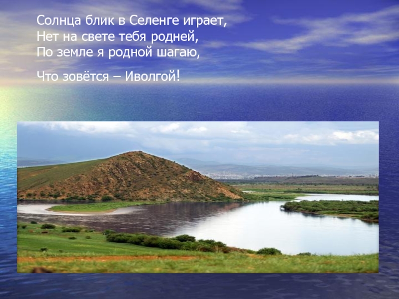 Слайд 2Солнца блик в Селенге играет, Нет на свете тебя родней, По земле я