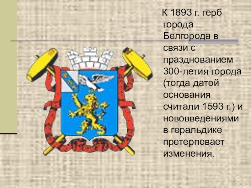 Слайд 13 К 1893 г. герб города Белгорода в связи с