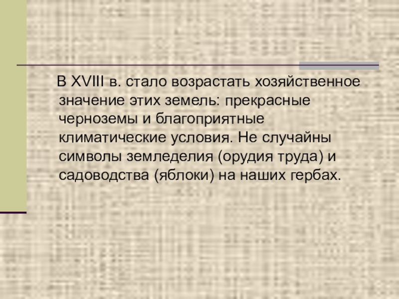 Слайд 3 В XVIII в. стало возрастать хозяйственное значение этих земель: