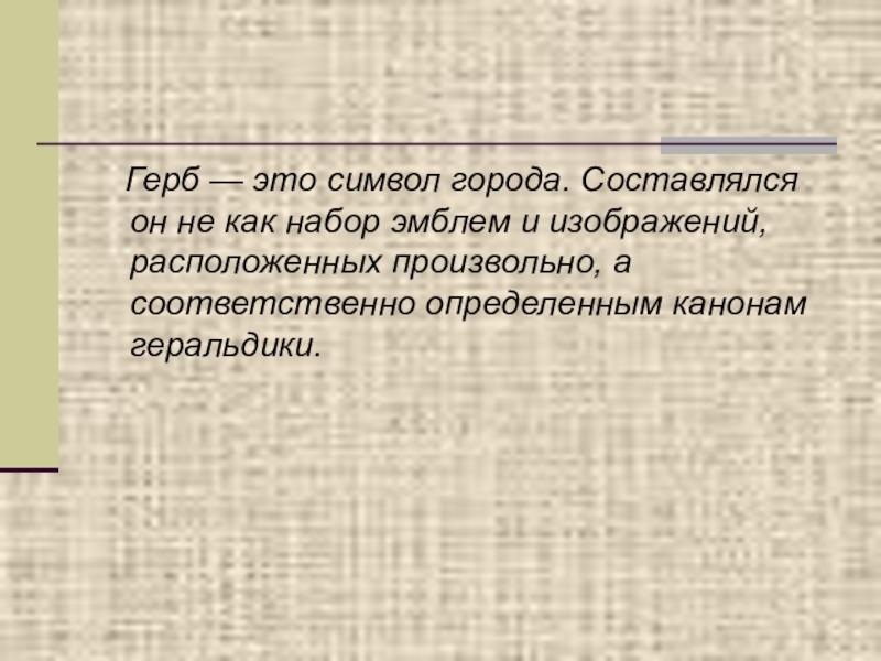 Слайд 4 Герб — это символ города. Составлялся он не как