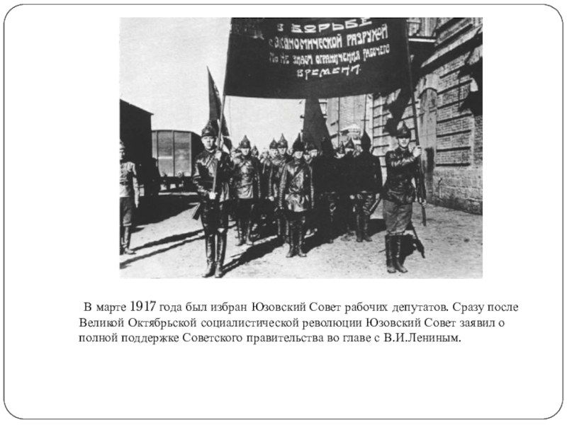 Слайд 14 В марте 1917 года был избран Юзовский Совет рабочих депутатов.