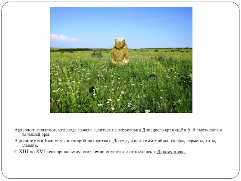 Слайд 2Археологи полагают, что люди начали селиться на территории Донецкого края ещё