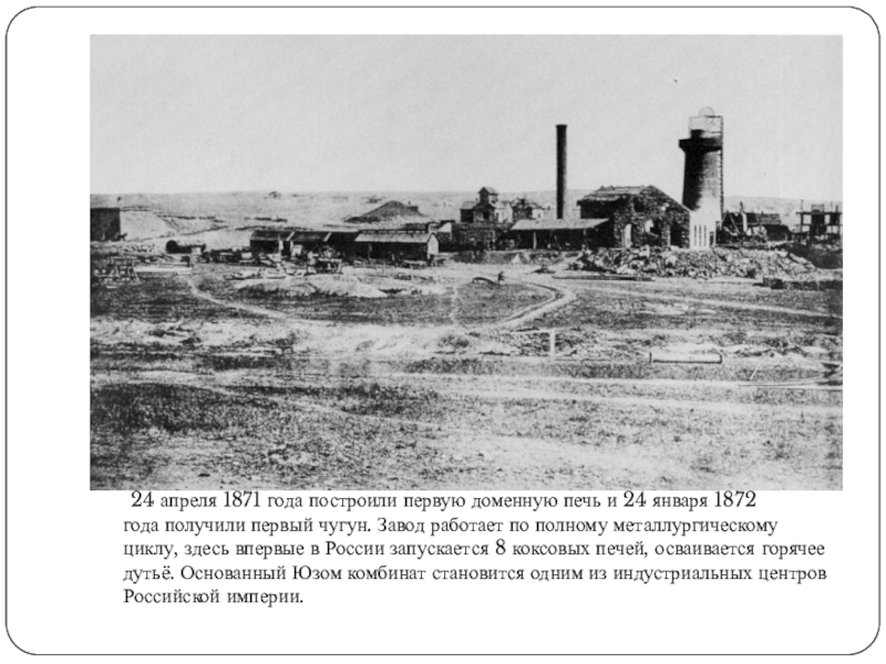 Слайд 9 24 апреля 1871 года построили первую доменную печь и 24 января 1872