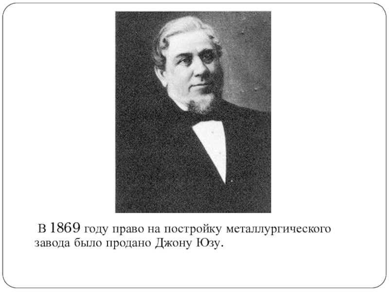 Слайд 7 В 1869 году право на постройку металлургического завода было