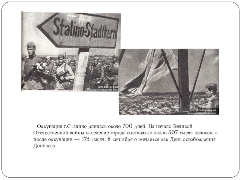 Слайд 22 Оккупация г.Сталино длилась около 700 дней. На