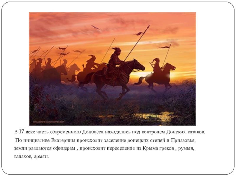 Слайд 3В 17 веке часть современного Донбасса находились под контролем Донских казаков.