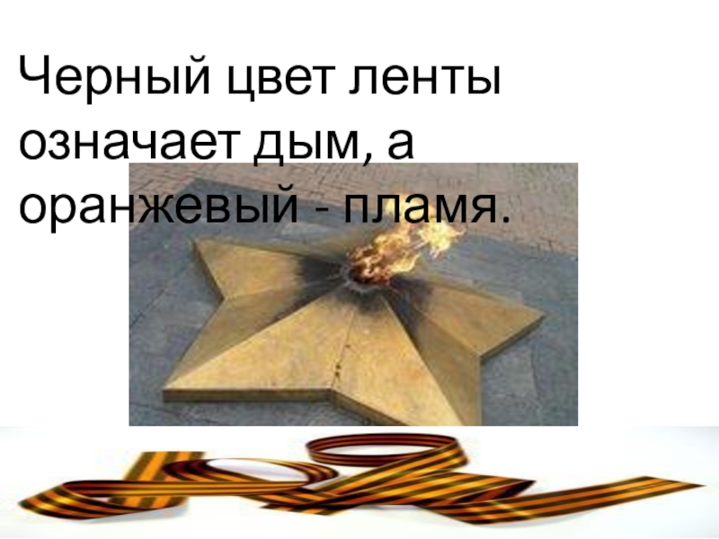 Слайд 5Черный цвет ленты означает дым, а оранжевый - пламя.