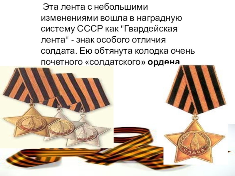 Слайд 4 Эта лента с небольшими изменениями вошла в наградную систему СССР