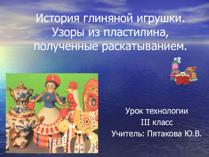 Слайд 1История глиняной игрушки. Узоры из пластилина, полученные раскатыванием.