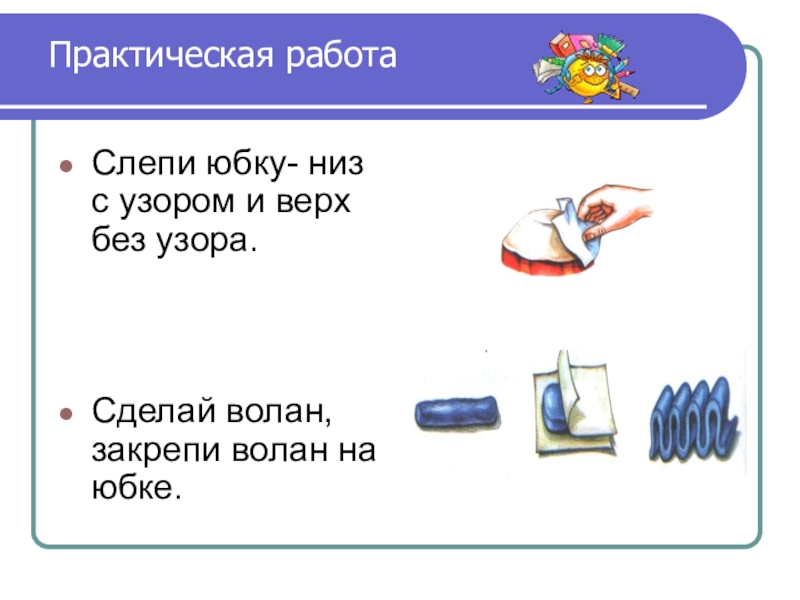 Слайд 25Слепи юбку- низ с узором и верх без узора.