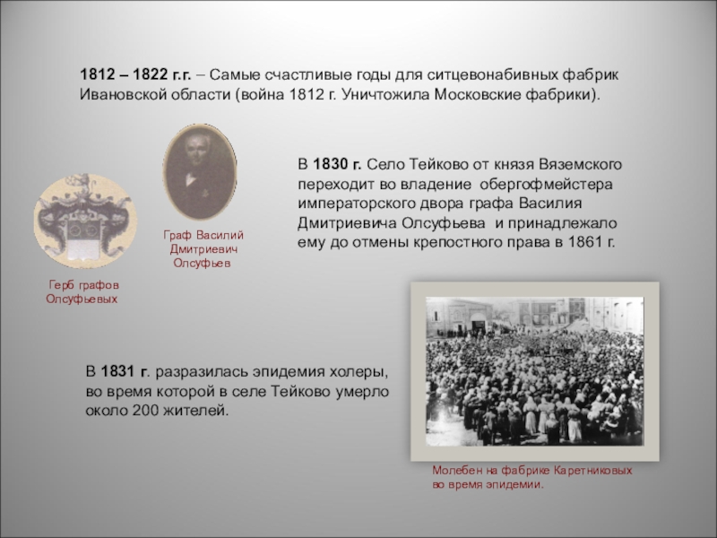 В 1860 г. на средства графа Алексея Васильевича Олсуфьева была открыта