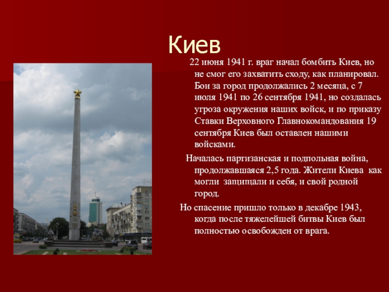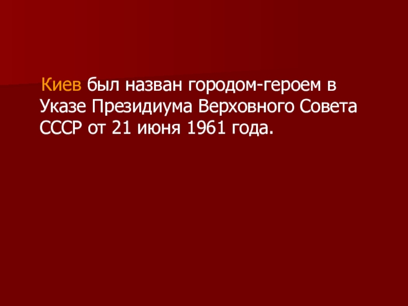 Слайд 13 Киев был назван городом-героем в Указе Президиума Верховного Совета