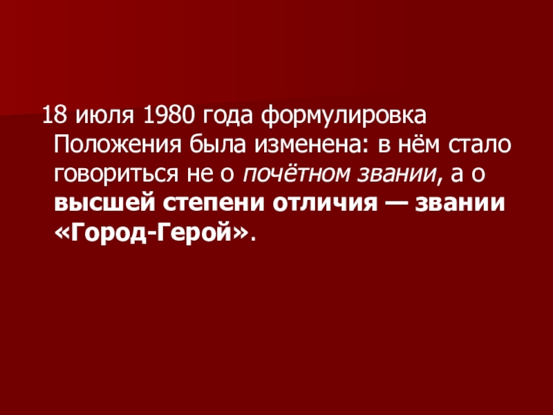 18 июля 1980 года формулировка Положения была изменена: в нём