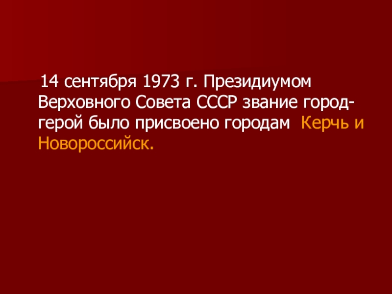 Слайд 21 14 сентября 1973 г. Президиумом Верховного Совета СССР звание