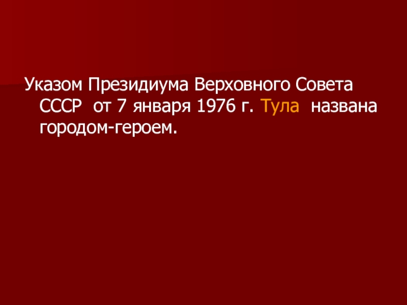 Слайд 31Указом Президиума Верховного Совета СССР от 7 января 1976 г. Тула