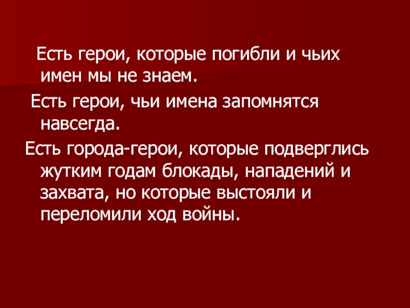 Слайд 2 Есть герои, которые погибли и чьих имен мы не знаем.