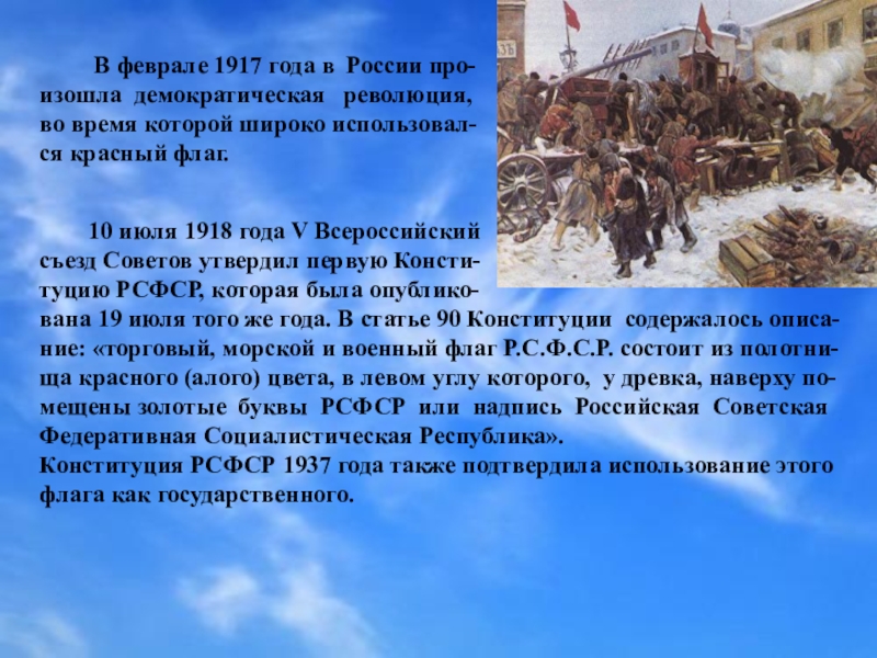 ние: «торговый, морской и военный флаг Р.С.Ф.С.Р. состоит из полотни-