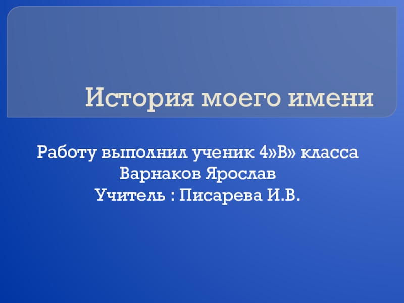 История моего имениРаботу выполнил ученик 4»В» классаВарнаков ЯрославУчитель : Писарева И.В.