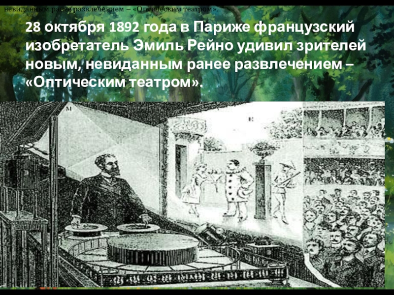 Слайд 428 октября 1892 года в Париже французский изобретатель Эмиль Рейно удивил