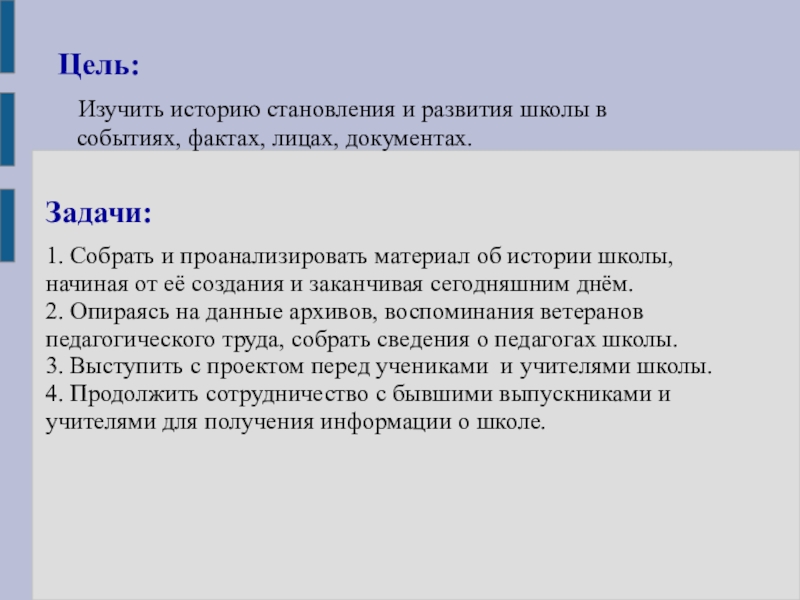 4. Продолжить сотрудничество с бывшими выпускниками и учителями для получения информации о школе.