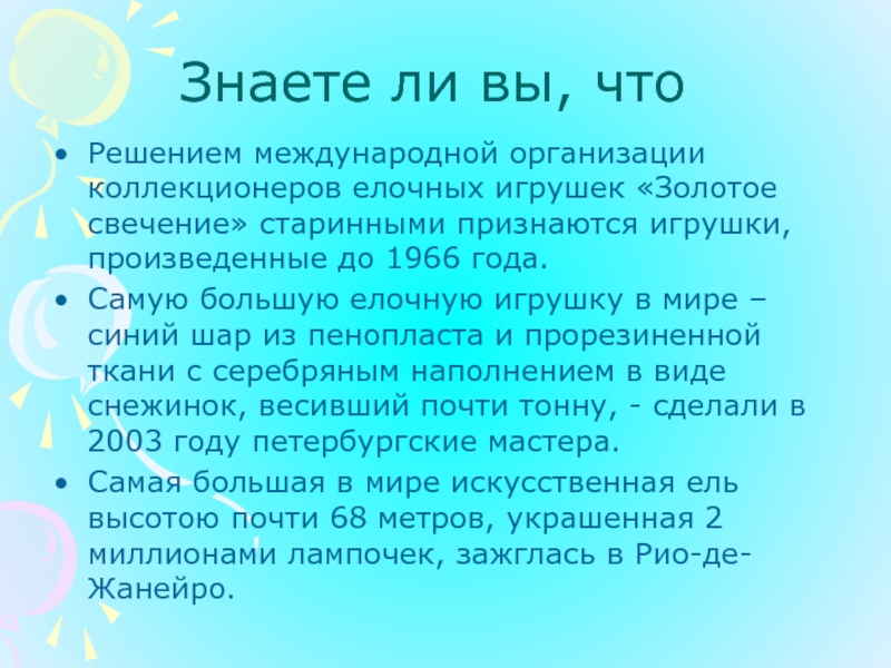 Решением международной организации коллекционеров елочных игрушек «Золотое свечение»