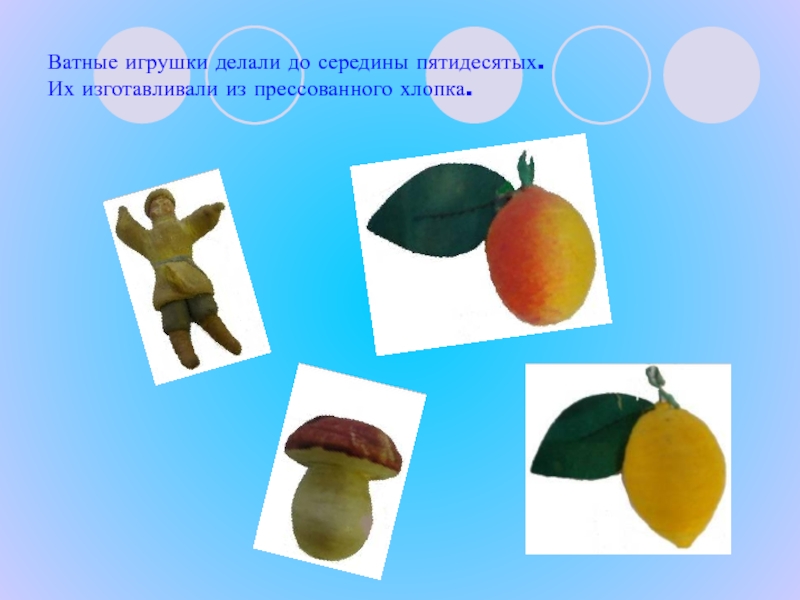 Слайд 8Ватные игрушки делали до середины пятидесятых.