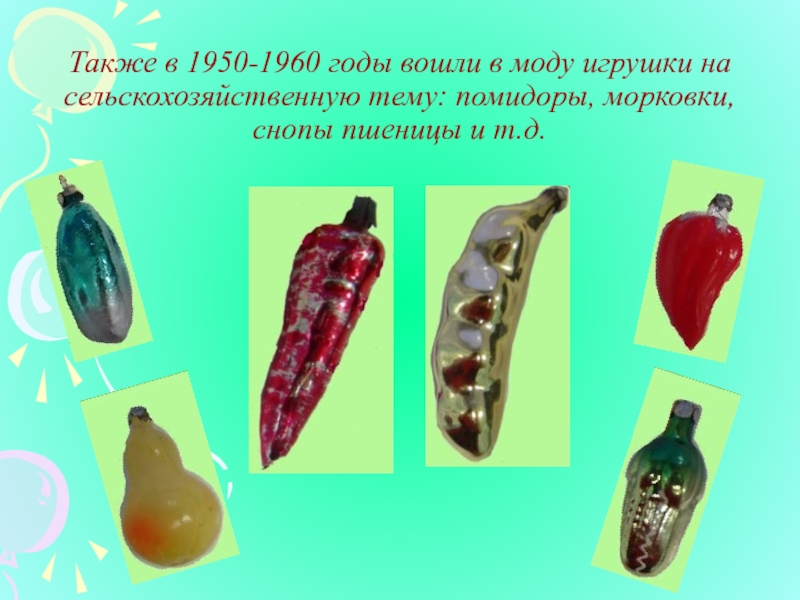 Слайд 9Также в 1950-1960 годы вошли в моду игрушки на сельскохозяйственную тему: