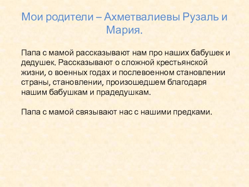 Они воспитали моих родителей, которые очень хорошие и умные.