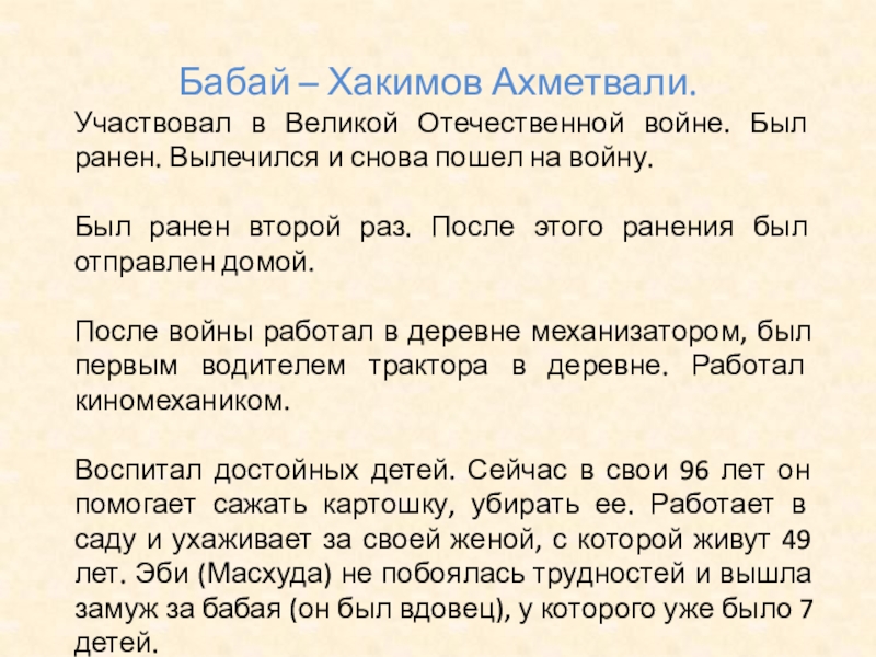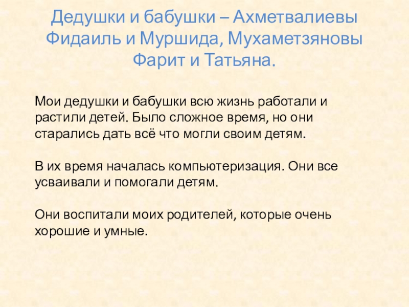 Мои дедушки и бабушки всю жизнь работали и растили детей. Было сложное время, но они старались дать всё что могли своим детям.