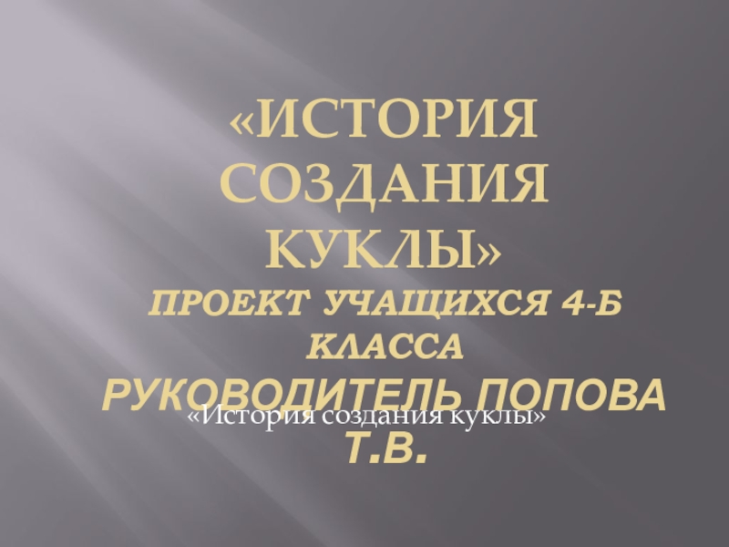 «История создания куклы» Проект учащихся 4-б класса Руководитель Попова Т.В.«История создания куклы»