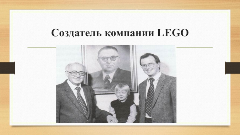 Три поколения руководителей LEGO: Оле Кирк, Готфрид и Кьелль Кристиансены.
