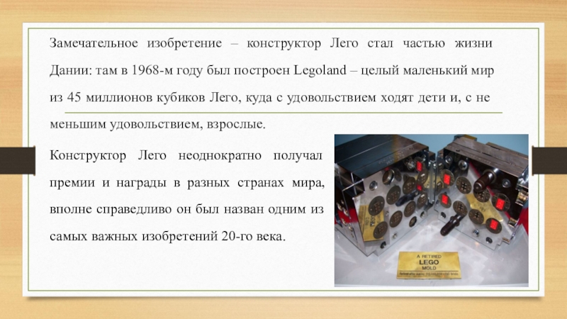 Конструктор Лего неоднократно получал премии и награды в разных странах мира, вполне справедливо он был назван одним из самых важных изобретений 20-го века.