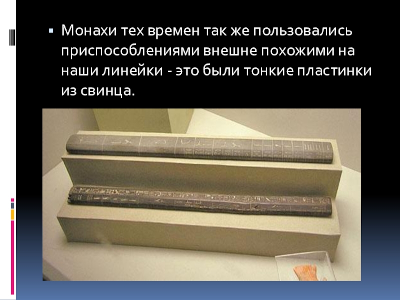 Монахи тех времен так же пользовались приспособлениями внешне похожими на наши линейки - это были тонкие пластинки